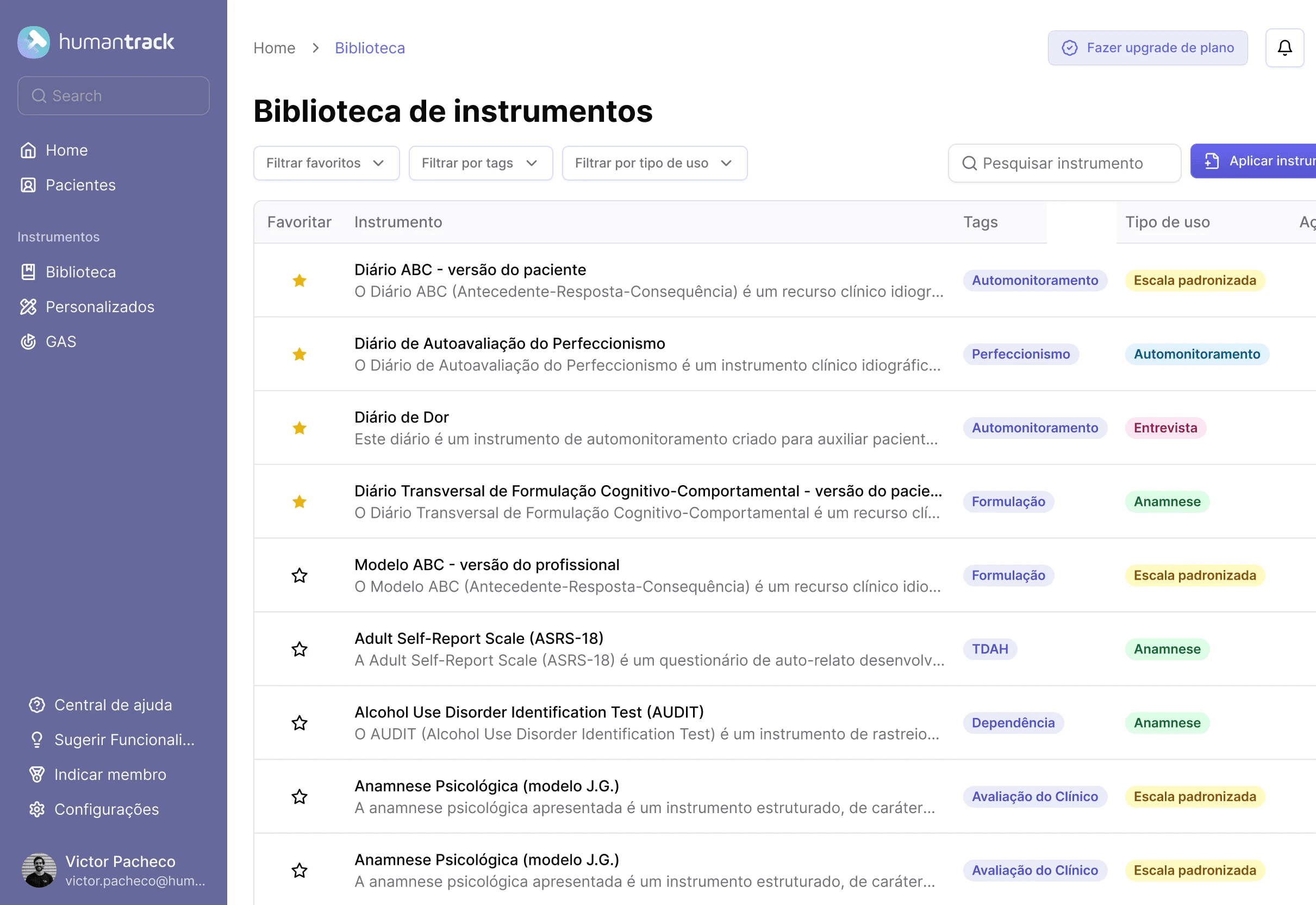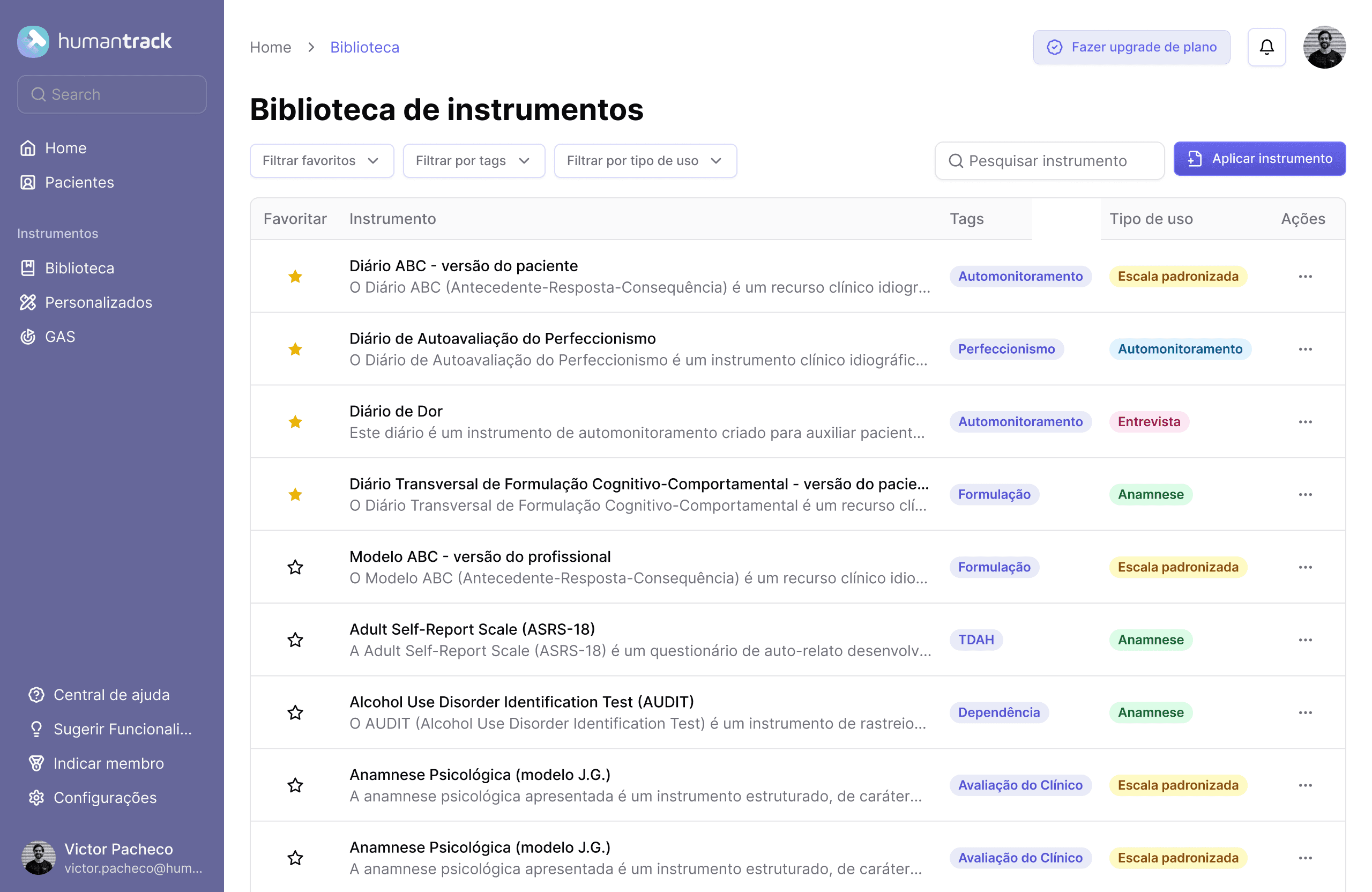 Acesse a plataforma completa, sem cartão de crédito. Veja como o HumanTrack pode transformar sua prática clínica